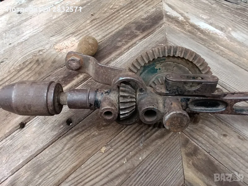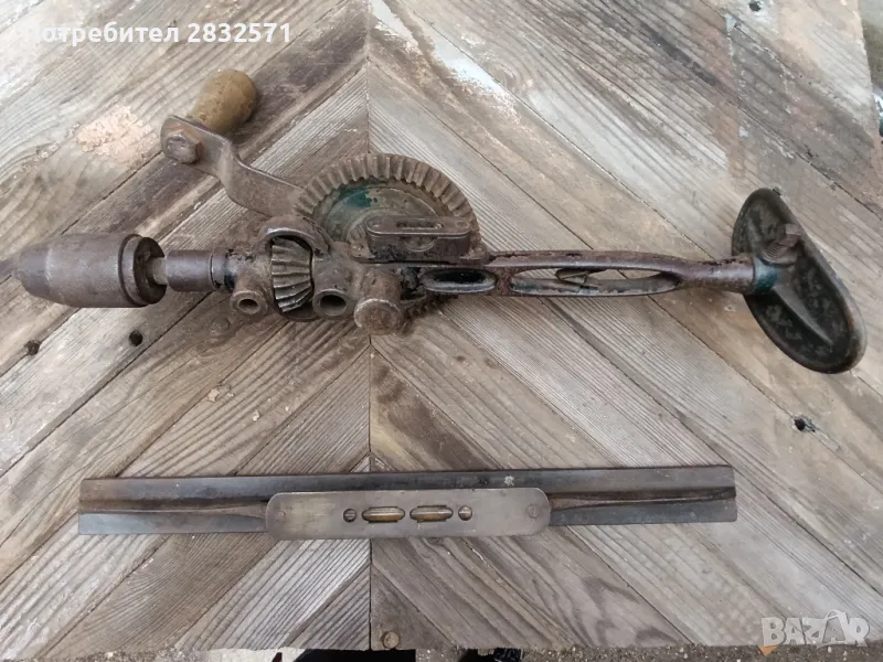 Стара ръчна бормашина с нивелир на нея. Рядък стоманен нивелир цената е за комплект