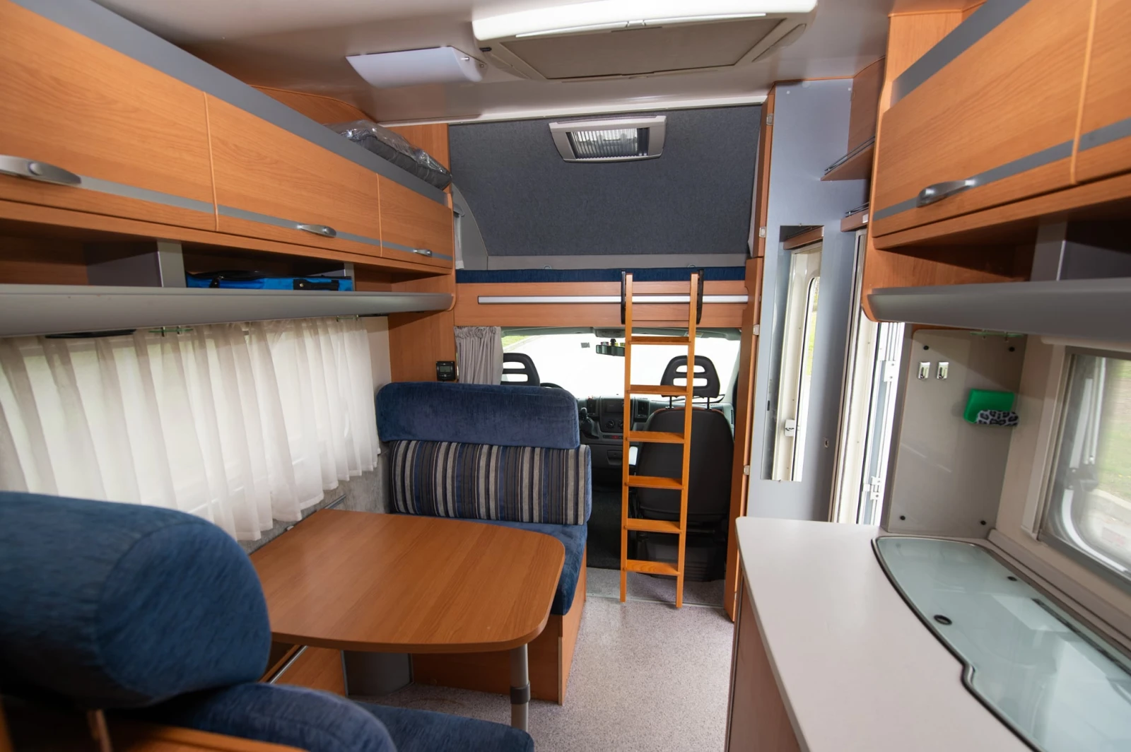 Продава се кемпер " Knaus Sport TR" с дължина 6. 50м. на базата на " Fiat Ducato 2. 3 Multijet" -2009г. внесен от Швейцария на собствен ход. Кемперът е в абсолютен, безупречен вид. Чист, спретнат, без миризми и течове, без ръжда и изгнило, без петна и износване по седалки и матраци. Разполага с двуетжни легла в дъното, седяща група в центъра, която се трансформира в спланя и още една голяма и просторна спалня в алковена над кабината. Банята е като нова, според бившия собственик, който е един: " Не е ползвана!" и така изглежда. - 6 бр. места за пътуване / всички седалки са оборудвани с обезопасителни колани/ - Спални места за до 6 човека. -Голям двустранен багажник /гараж/, долното легло се повдига и става още по-голям. -Стабилизатори монтирани в задния край на рамата. -Голяма тента - Напълно функциониращи люкове, щори и комарници навсякъде. - Големият люк в центъра е електрически. - Комбиниран бойлер " Truma" на газ за топла вода и отопление. - Допълнителна печка " Webasto" . - Хладилник с камера на газ. - Котлони на газ. - Тягов акумулатор. - Плъзгащ се комарник тип " плисе" на входната врата. - Качествена мултимедия " Pioneer" . - Налична газова бутилка с прилежащите и връзки и винтили. - Резеровар за чиста вода 100л. - Резервоар за мръсна вода над 100л. -