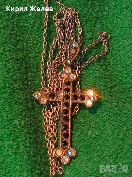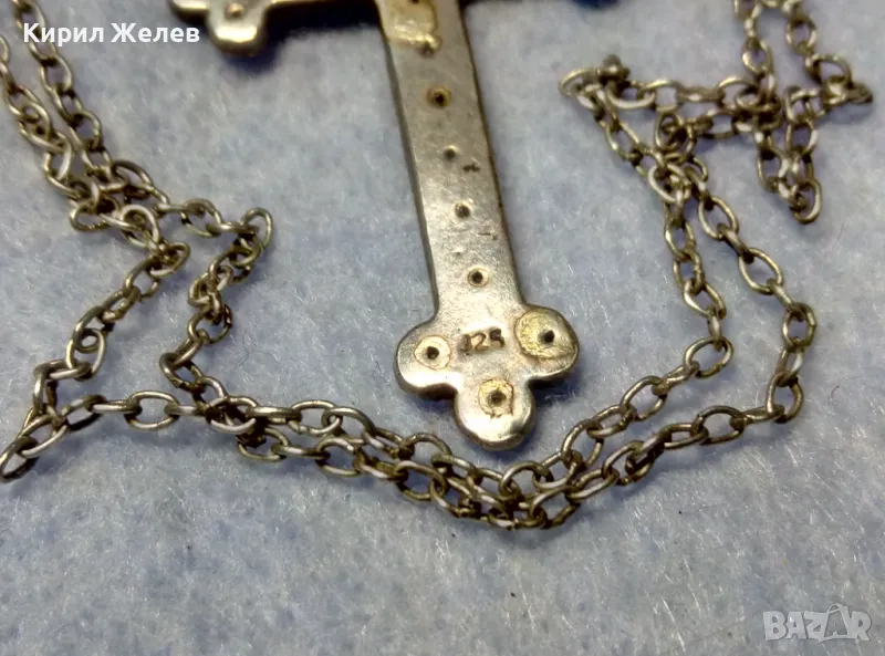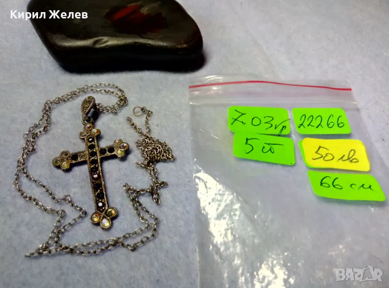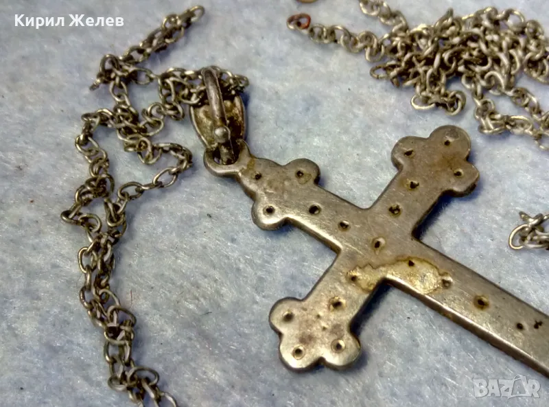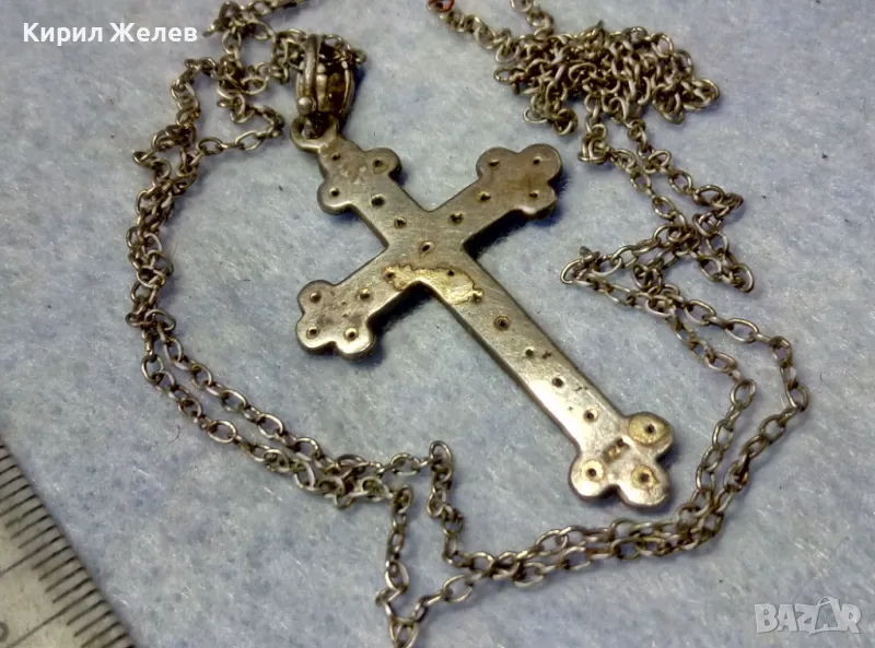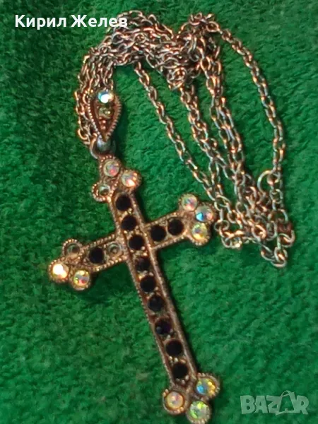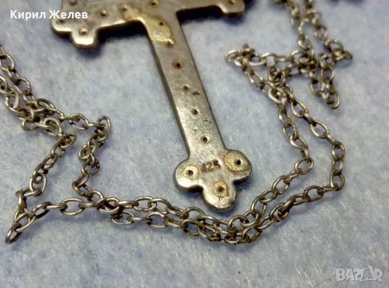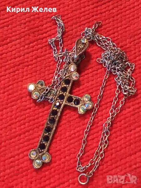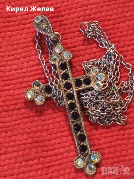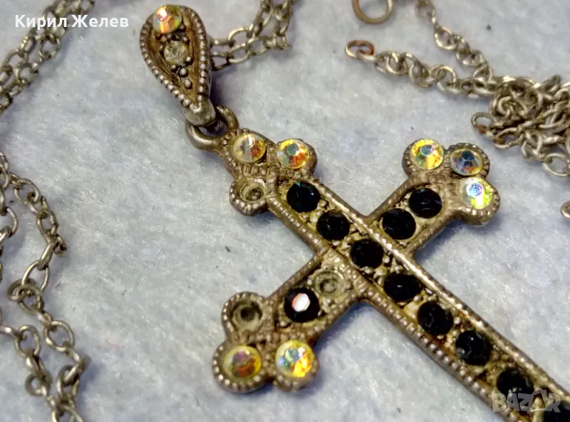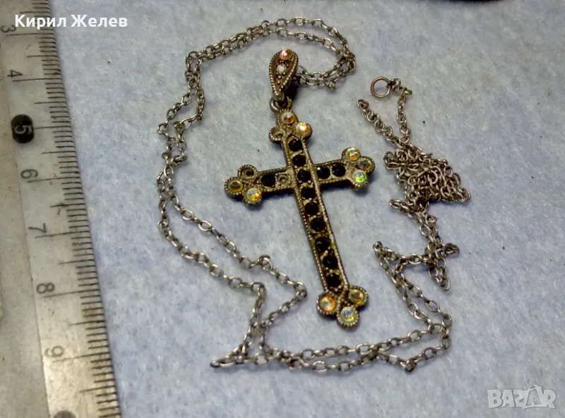 СТАР СРЕБЪРЕН КРЪСТ СРЕБРО 925 с ФАСЕТИРАНИ КРИСТАЛИ и СРЕБЪРНА ВЕРИЖКА с НУЖДА от ЗАКОПЧАЛКА 22266