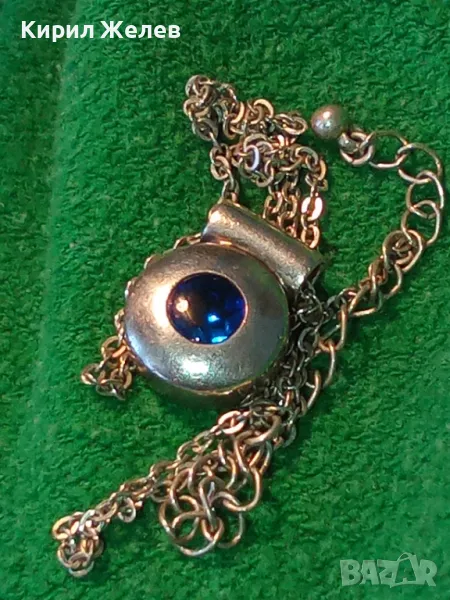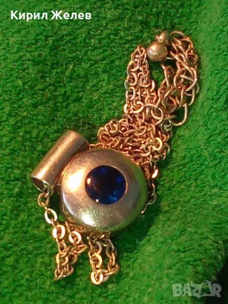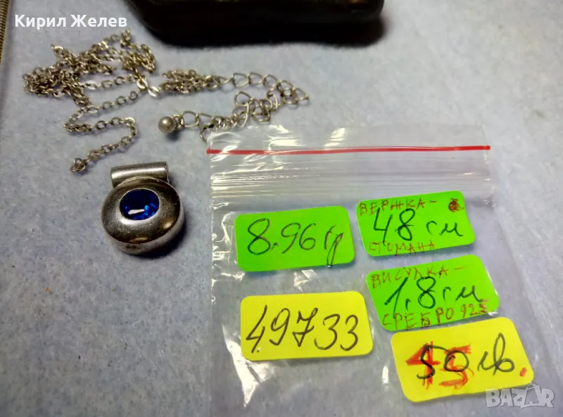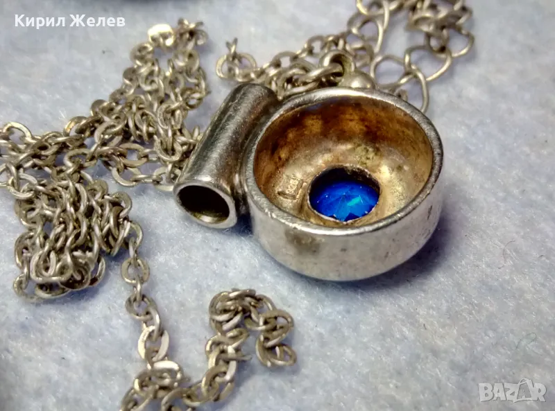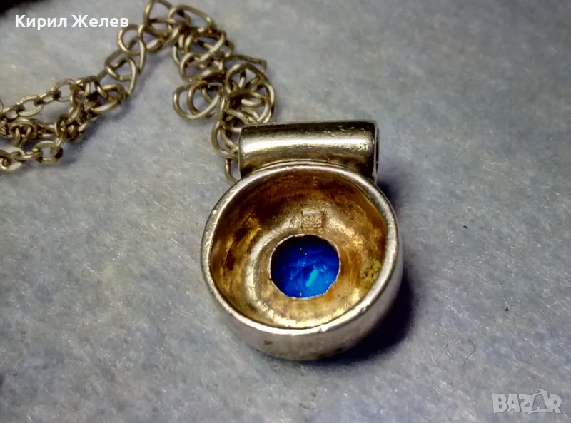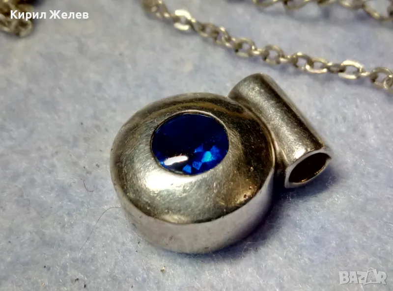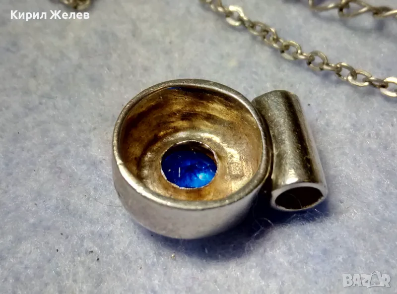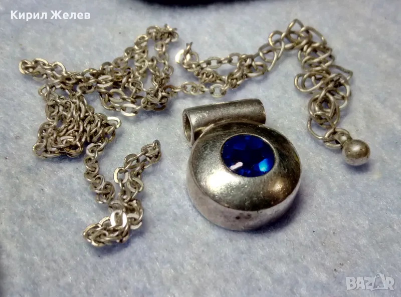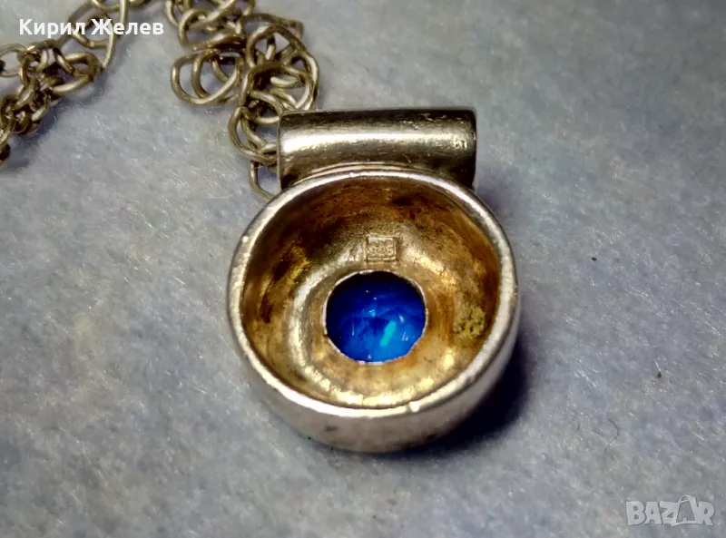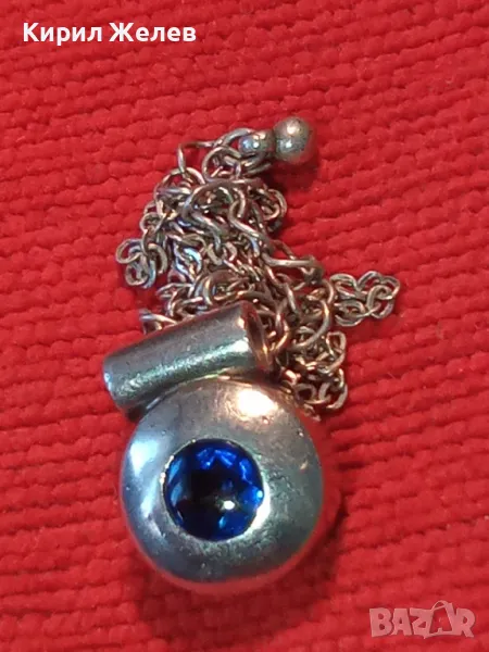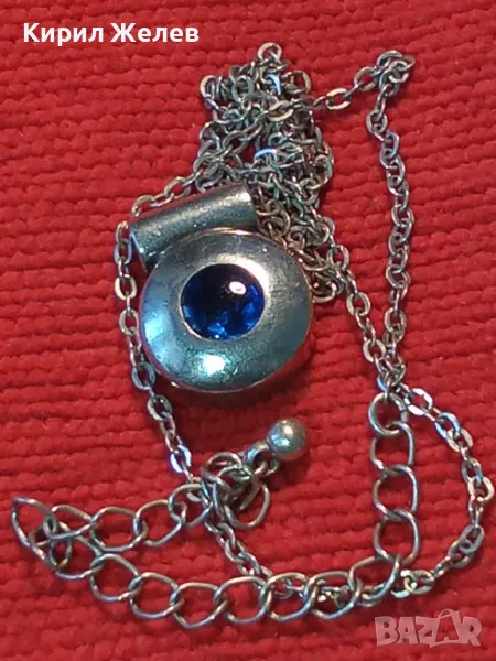 СКЪПОЦЕНЕН СРЕБЪРЕН МЕДАЛЬОН СРЕБРО 925 с ЮВЕЛИРНО ФАСЕТИРАН СИН ЦИРКОН и ПОСРЕБРЕНА ВЕРИЖКА 49733