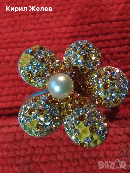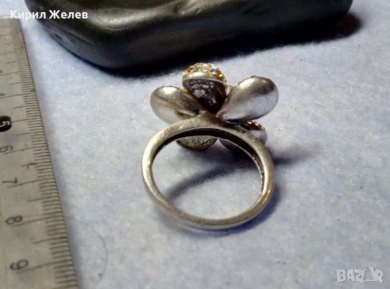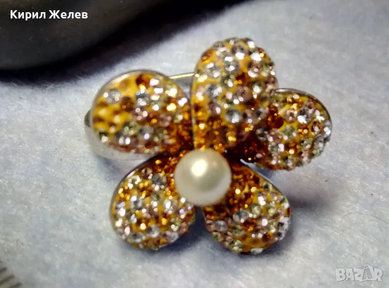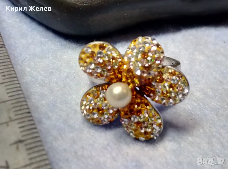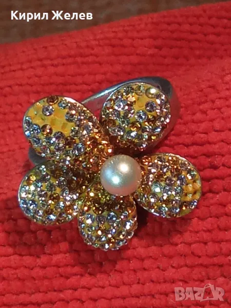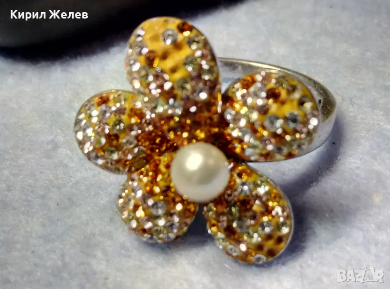 СКЪПОЦЕНЕН СРЕБЪРЕН ПРЪСТЕН ЦВЕТЕ СРЕБРО 925 с НАТУРАЛНА БЯЛА ПЕРЛА ЕМАЙЛ и ИСКРЯЩИ ЦИРКОНИ 26219