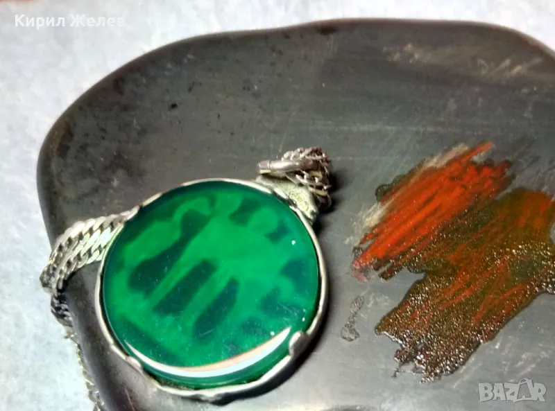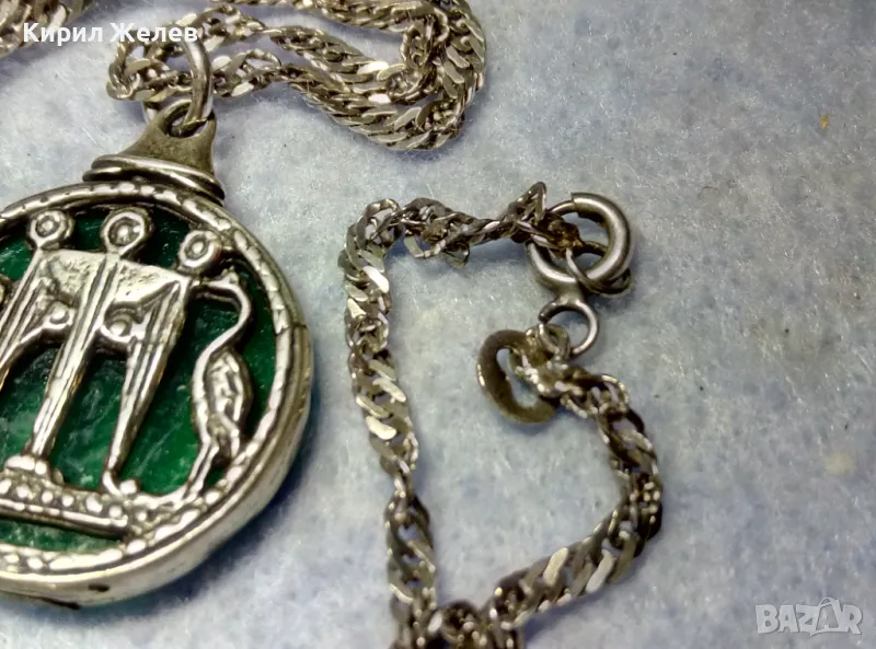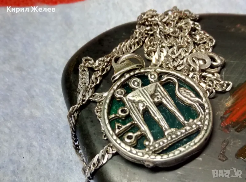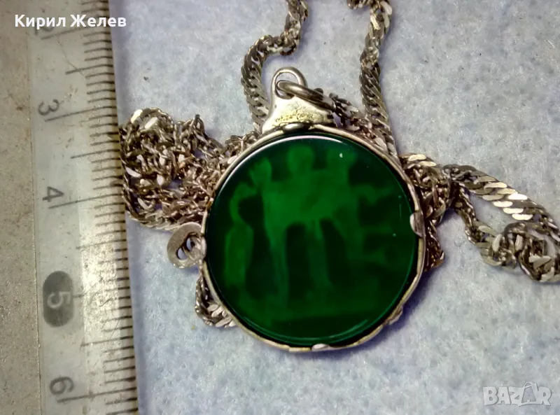 ИТАЛИАНСКИ ДАМСКИ МЕДАЛЬОН от СРЕБРО и СТЪКЛЕНА ПАСТА Paste Vitree Със СРЕБЪРНА 925 ВЕРИЖКА 25868
