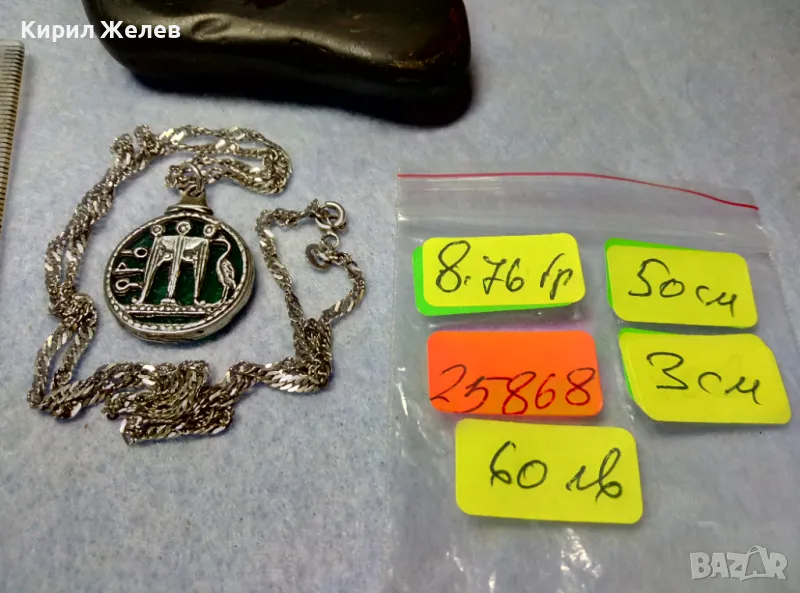 Пускам голяма СЕРИЯ от майсторска ръчна изработка старинни и нови СРЕБЪРНИ БИЖУТА - пръстени, обеци, медальони, гривни, ланци, колиета, брошки - някои са инкрустирани със скъпоценни или полускъпоценни камъни. Всичките са ТЕСТВАНИ ПРОФЕСИОНАЛНО върху лидийски камък с пробер - киселина за сребро, като особено по-старите, ръчно изработени и без маркировка които са, е заснето и резултата на камъка - яркочервеният цвят при натъркване и капване на киселината показва, че са от масивно СРЕБРО ВИСОКА ПРОБА. Има и накити от САЧАН /нископробна сребърна сплав, с която са работели старите майстори - куюмджии от периода на ВЪЗРАЖДАНЕТО и края на 19-ти век/, мед, бронз и благородна стомана с позлата или посребряване. Снимките ги ОНАГЛЕДЯВАТ! Имам НАД 27000 обяви в профила си - За ВСЕКИ по НЕЩО...! Изпращам по Еконт или Спиди с опция Преглед/Тест и отстъпка-транспорт.