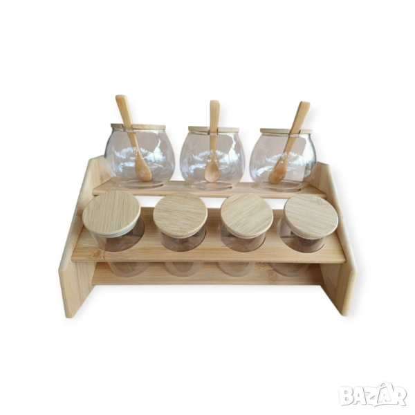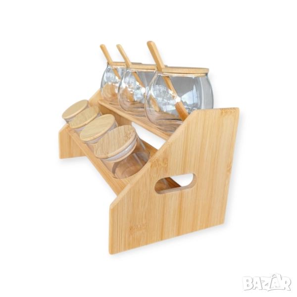 Естествени материали - бурканчетата са изработени от качествено стъкло и устойчив бамбук, които добавят топлина и елегантност към интериора на всяка кухня.