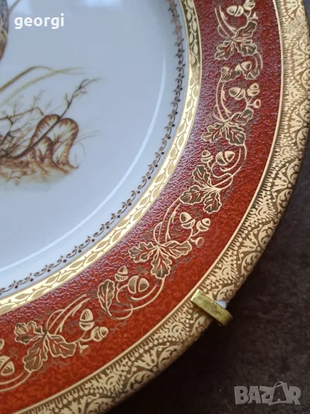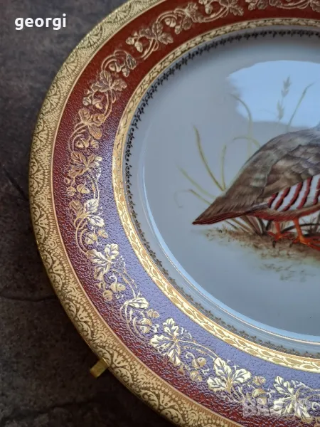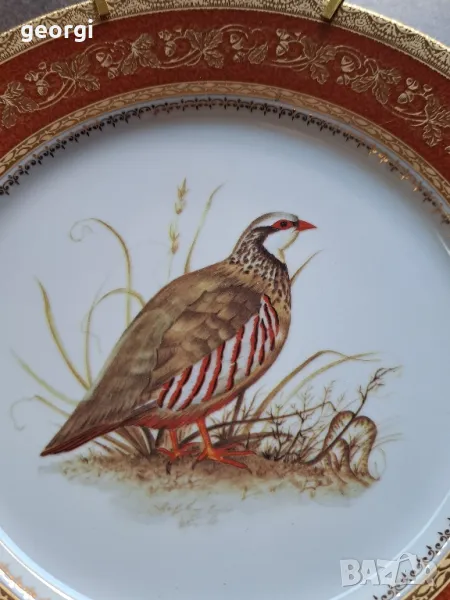 декоративна порцеланова чиния с позлата Limoges ловен мотив яребица 8/1 → Обява 49913659