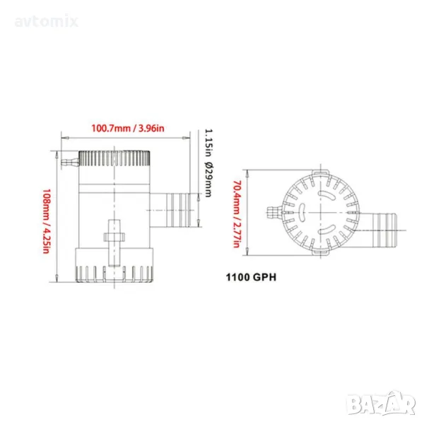 Отводнителна потопяема помпа, 12V, 1100GPH 3500GPH
