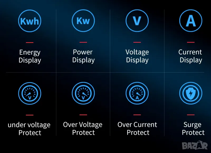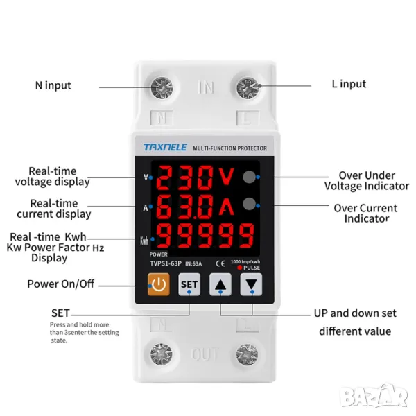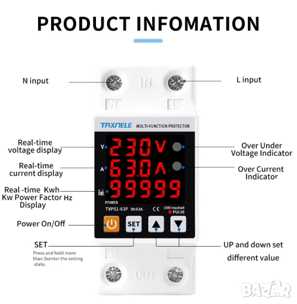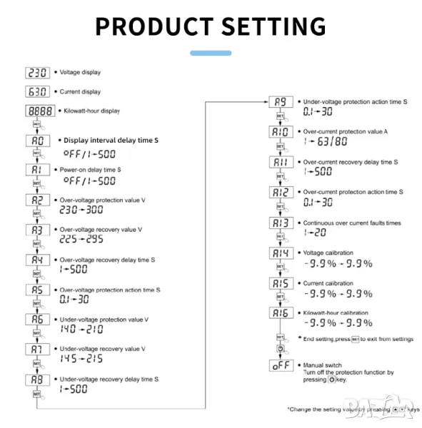 Когато захранването е изключено, продуктът може да запаметява стойностите на Kwh, над напрежението, под напрежението и над тока.