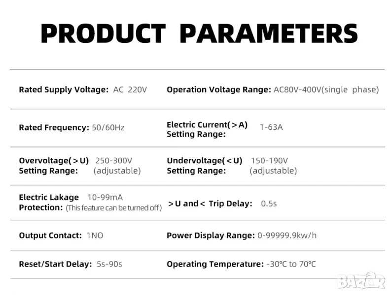 - Широк работен диапазон: Устройството може да работи в широк температурен диапазон от -10°C до 65°C и има диапазон на измерване от AC 80-400V, което го прави подходящо за различни приложения и среди.