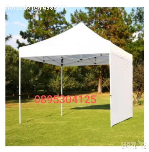 шатра 3х3м бяла сгъваема тип хармоника,бяла метална изключително здрава конструкция,непромокаемо здраво платнище гумирано отдолу,разпъва се за 1 минута