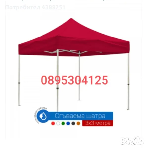 4) Шатра 3х3м - сгъваема тип хармоника 22кг 219.00лв.