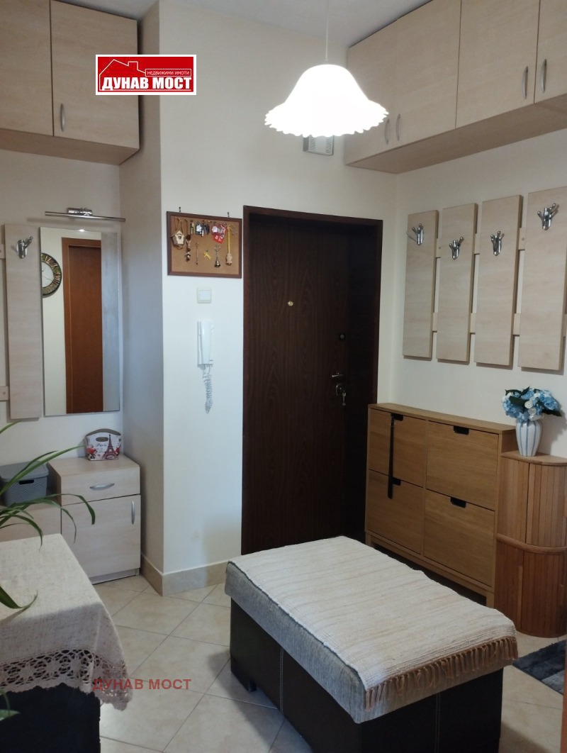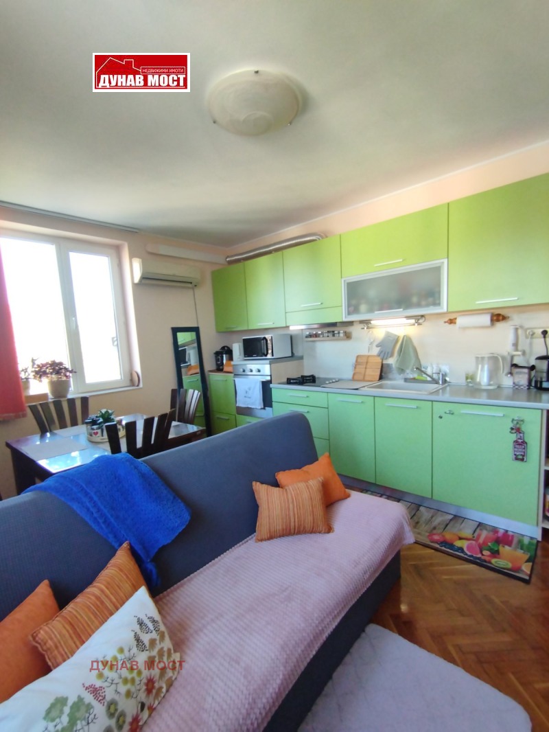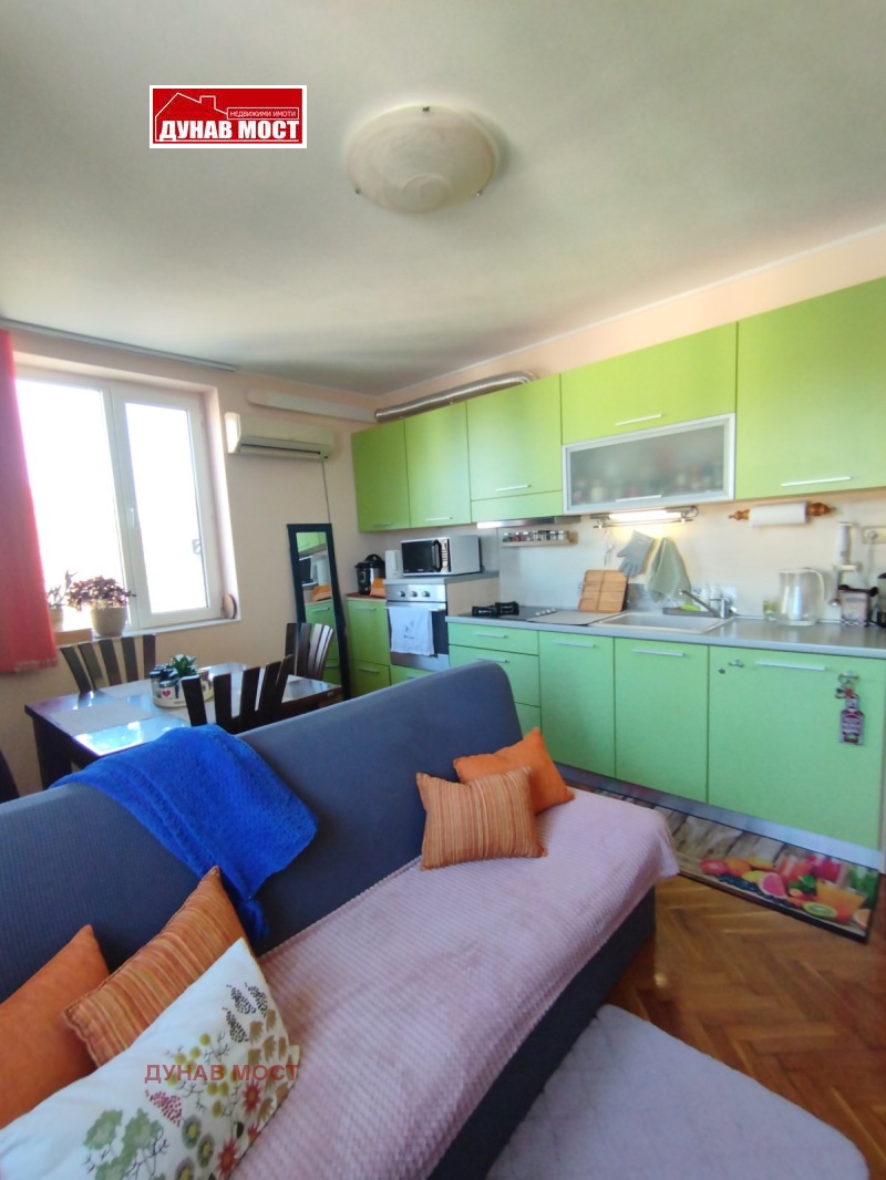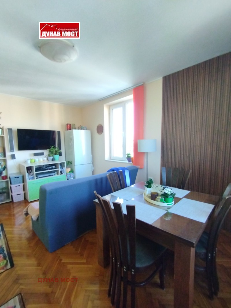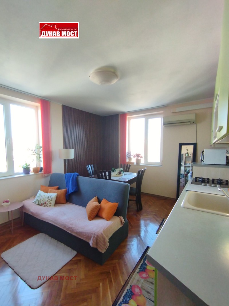 Агенция 'ДУНАВ МОСТ' предлага за продажба стандартен тухлен двустаен апартамент с изключителна локация и гледка към река Дунав. Апартамента се състои от самостоятелни три обширни стаи, като са преустроени на дневен тракт (дневна с кухня), детска и спалня. Общ санитарен възел (баня и тоалетна). Две от стаите са на паркет в отлично състояние, подменена дограма. Отоплението на апартамента е решено с климатици. Две тераси остъклени с PVC-дограма. Имота е с прекрасна гледка към река Дунав. Към апартамента има прилежащи мазе-5 кв.м. и таванска стая-7 кв.м. Имота се продава с частично обзавеждане включено в цената.