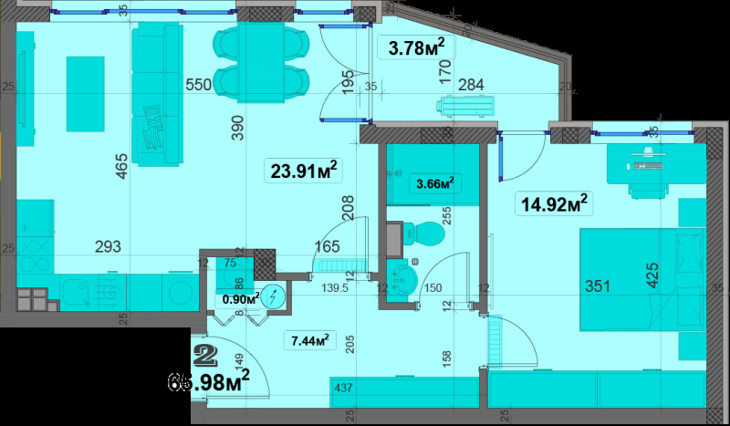 Апартаментите в сградата са с хубави изложения, функционални разпределения,оптимално усвоен обем на пространствата и широки слънчеви тераси с гледки.