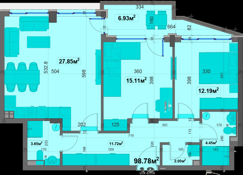 Апартаментите в сградата са с хубави изложения, функционални разпределения,оптимално усвоен обем на пространствата и широки слънчеви тераси с гледки.
