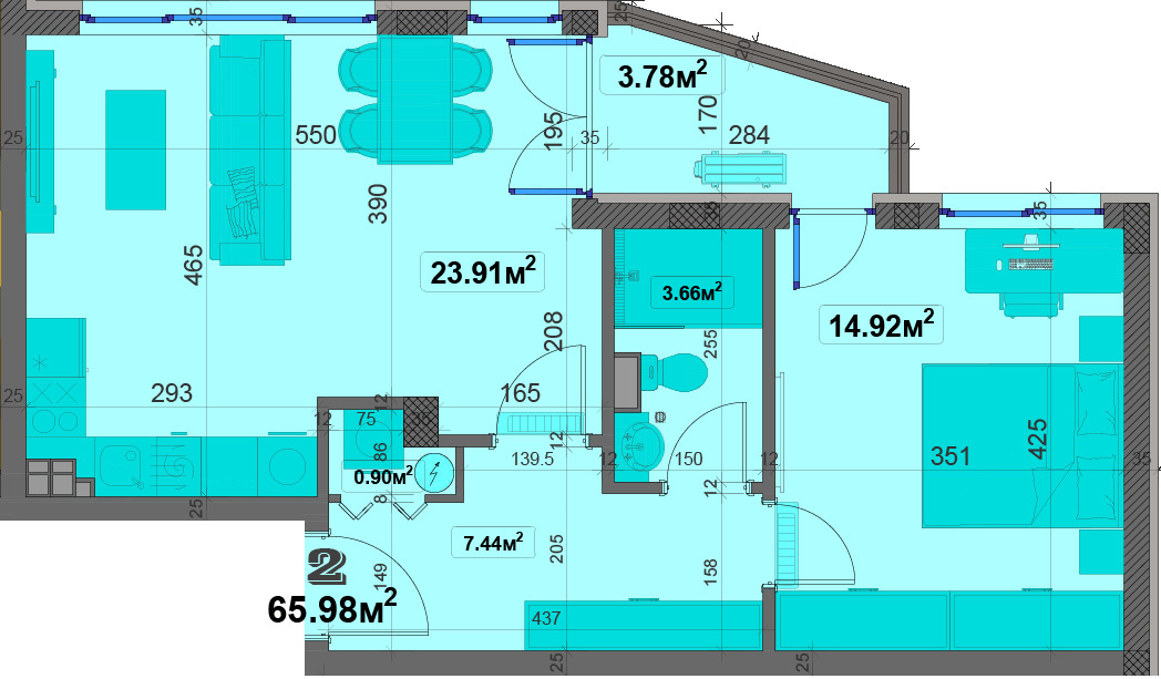 Апартаментите в сградата са с хубави изложения, функционални разпределения,оптимално усвоен обем на пространствата и широки слънчеви тераси с гледки.