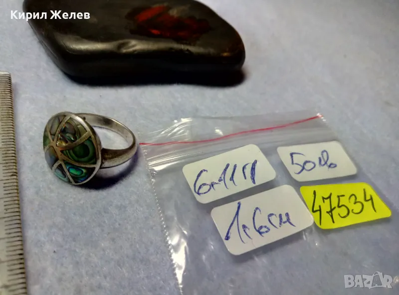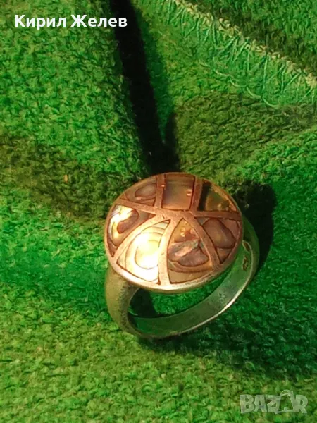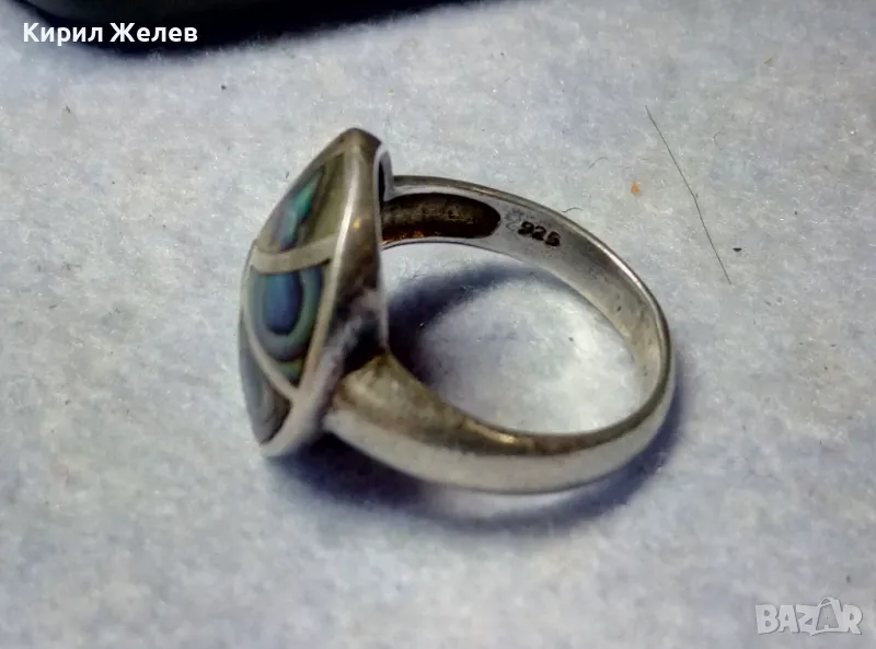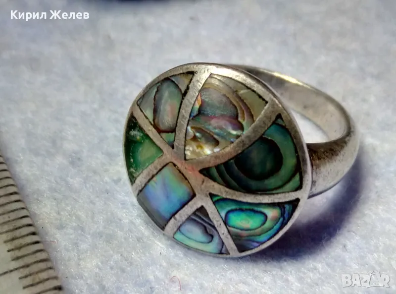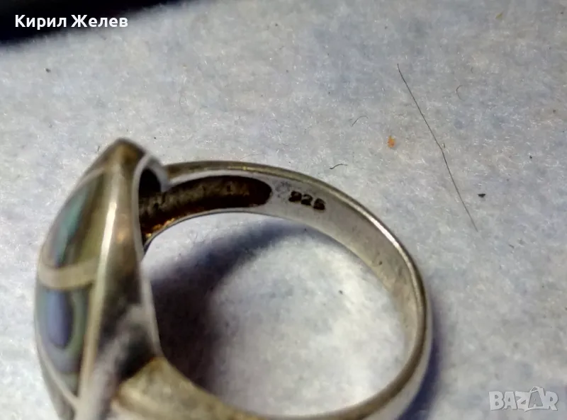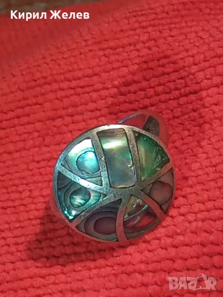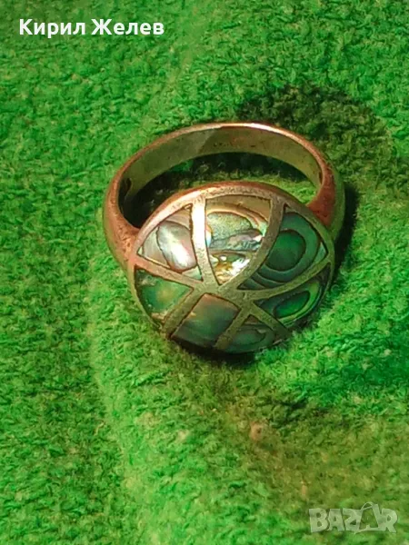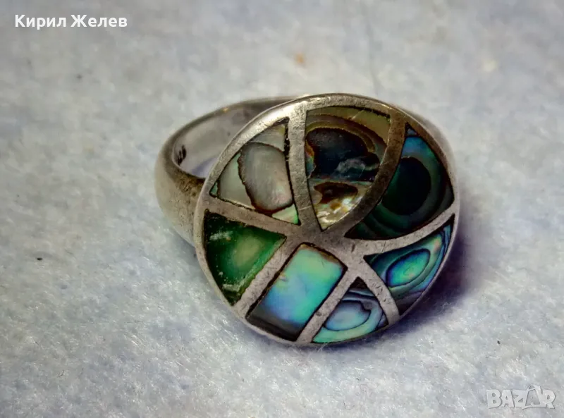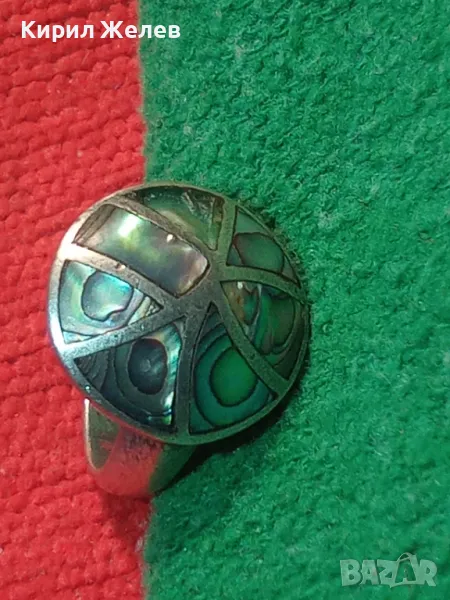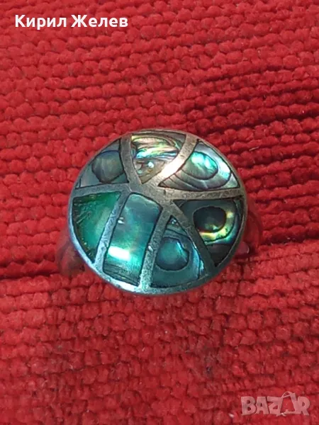 ПРЕКРАСЕН ВИНТИДЖ АРТ СЕДЕФЕН СРЕБЪРЕН ПРЪСТЕН СРЕБРО 925 с РЪЧНО ИНКРУСТИРАН КРАЛСКИ СЕДЕФ 47534