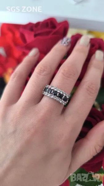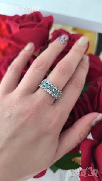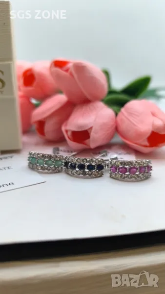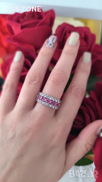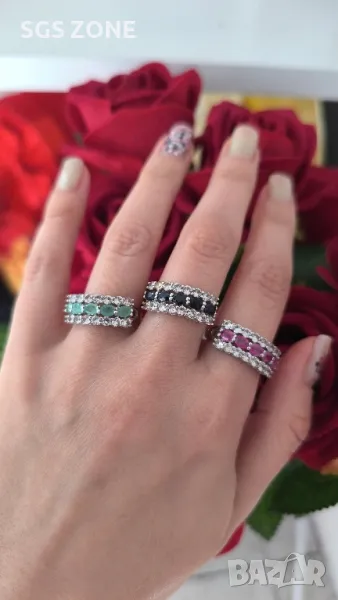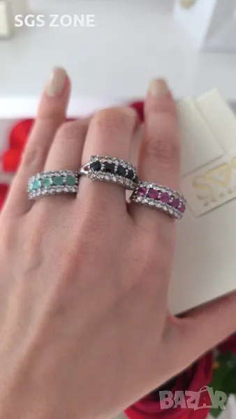 Сребърен пръстен с рубин/сапфири/изумруди и два реда прозрачни топази. Още снимки и видеа на продукта в Instagram и Facebook sgs.zone, уебсайт sgs.zone. Изпращане Speedy и Эконт. Шоурум в София, Дондуков, 53. Всички продукти са със сертификати и подаръчна кутия