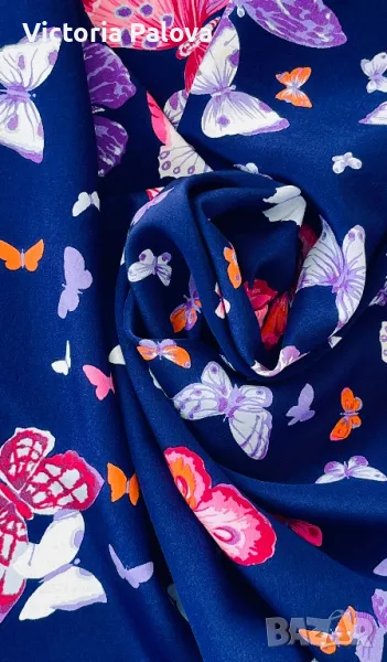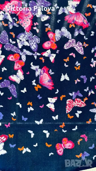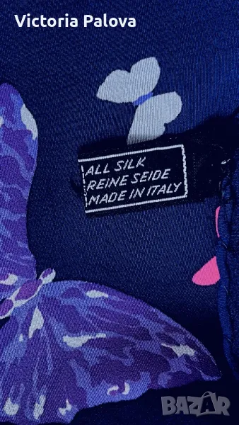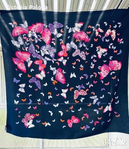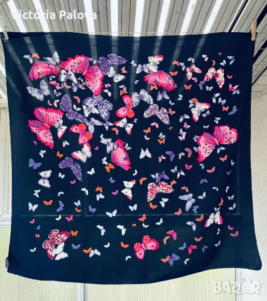 Много красив шал с пеперуди, гладка плътна коприна, без забележки, 87см на 83см.