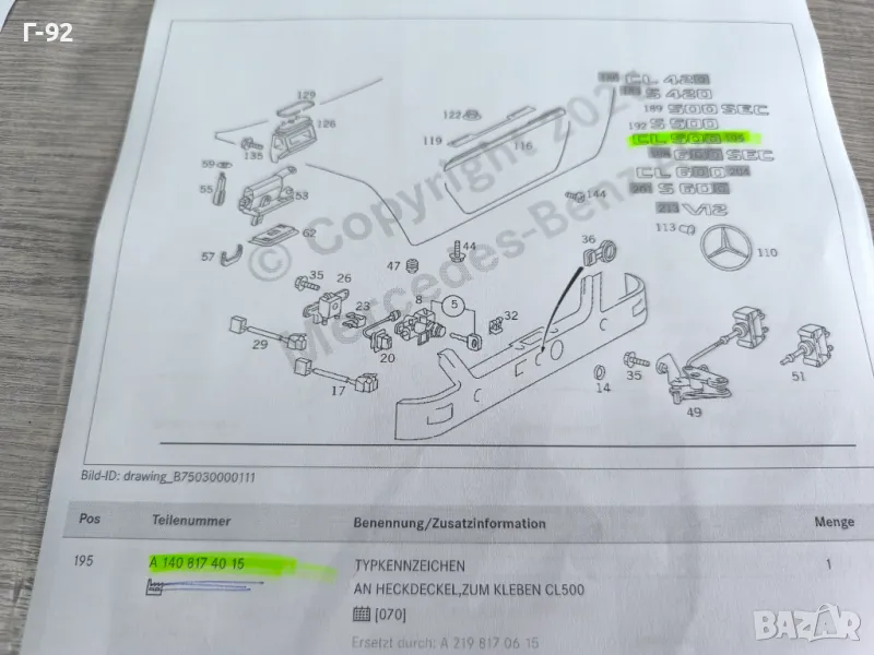 A1408174015**NEU**НОВА ЧАСТ**MERCEDES-BENZ**CL500**ЕМБЛЕМА ЗАДНА**