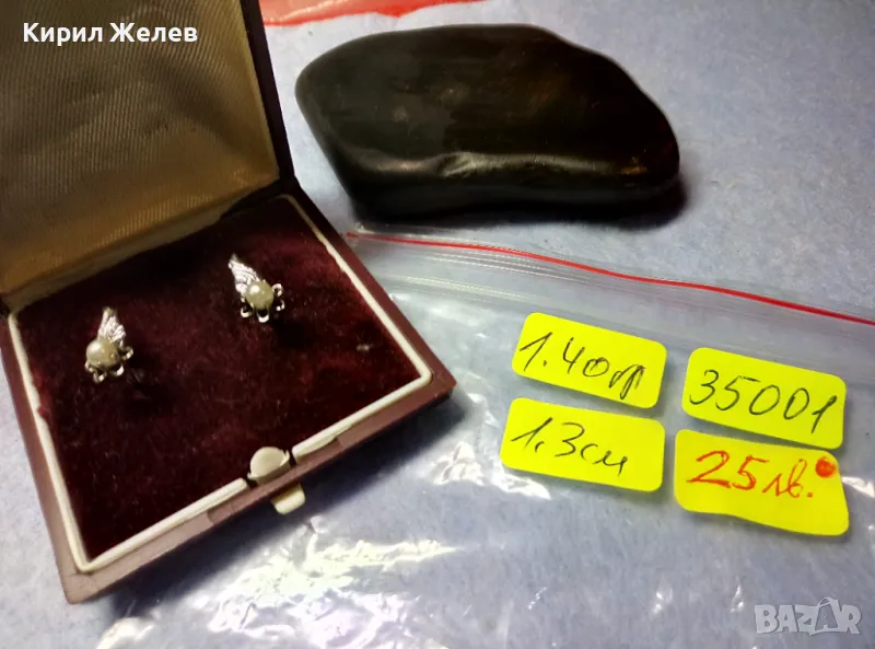 СТАРИ РУСКИ СССР СРЕБРИСТИ РЕТРО АРТ ОБЕЦИ от БЛАГОРОДНА СТОМАНА с ЧЕШКИ ПЕРЛИЧКИ и ЛУКС КУТИЯ 35001