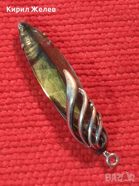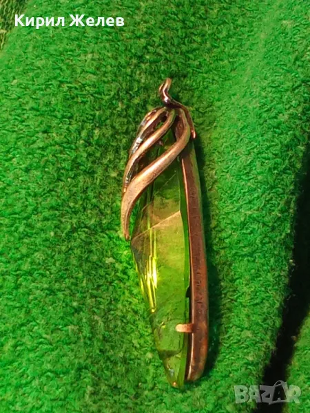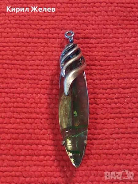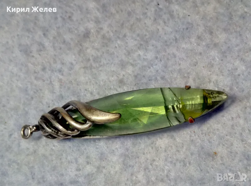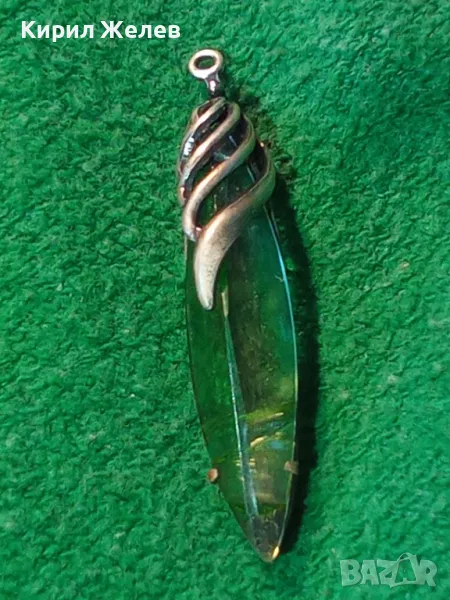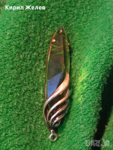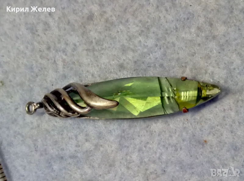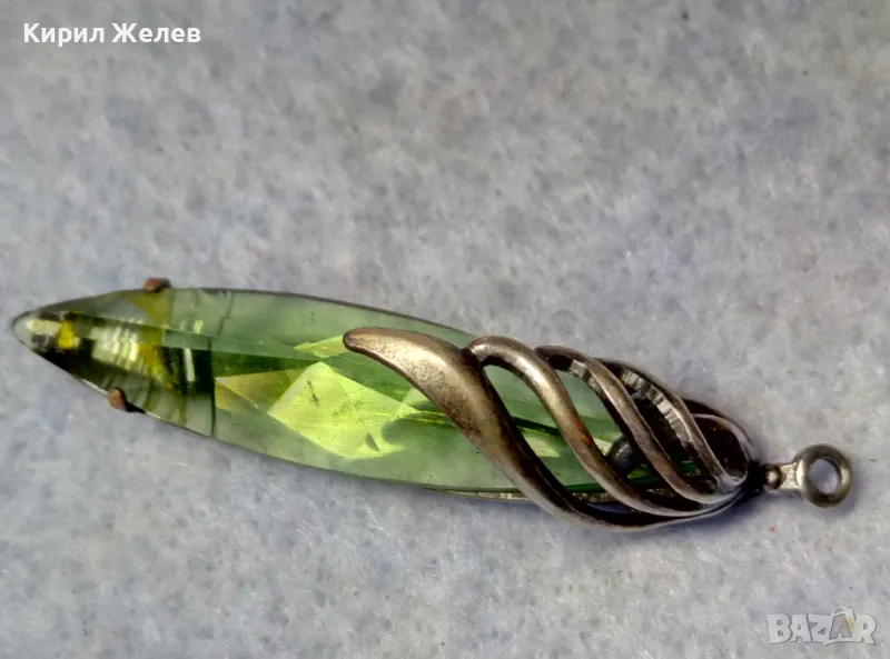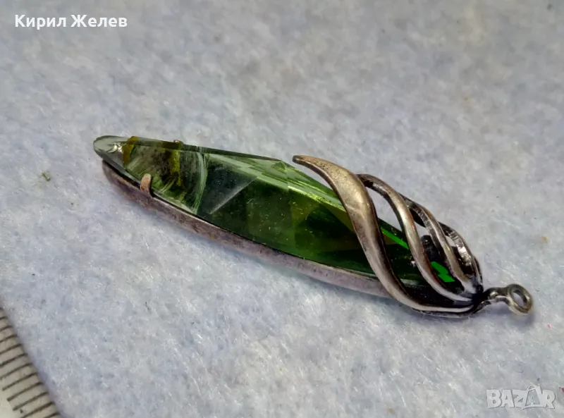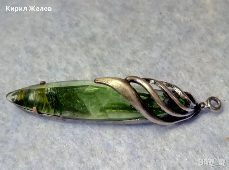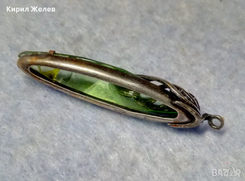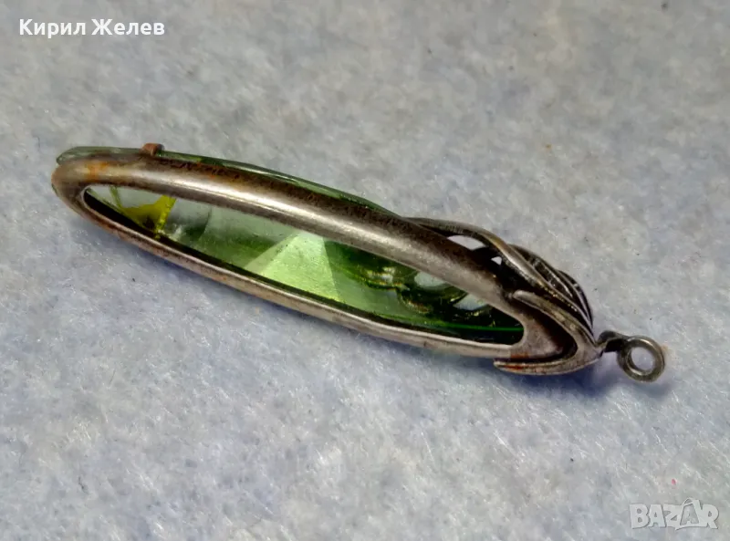СТАР РУСКИ ДЕБЕЛО ПОСРЕБРЕН МЕЛХИОРЕН МЕДАЛЬОН с ФАСЕТИРАН ЗЕЛЕН КРИСТАЛ ЧАСТ от КОМПЛЕКТ 27519