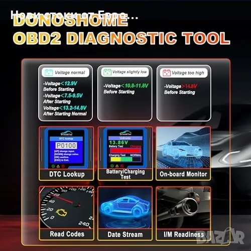 DonosHome OBD2 скенер Диагностичен четец на кодове за грешки