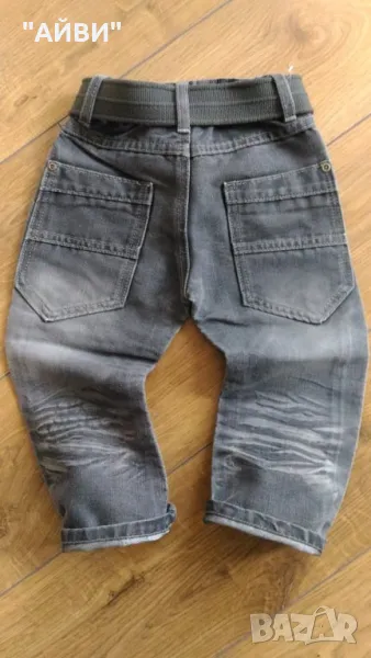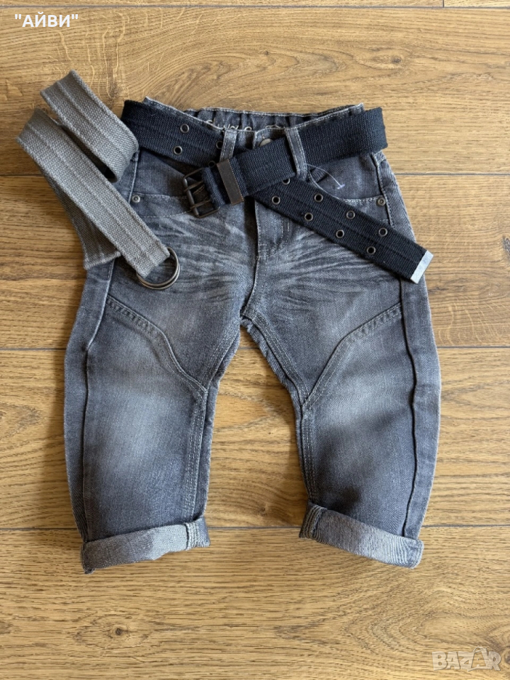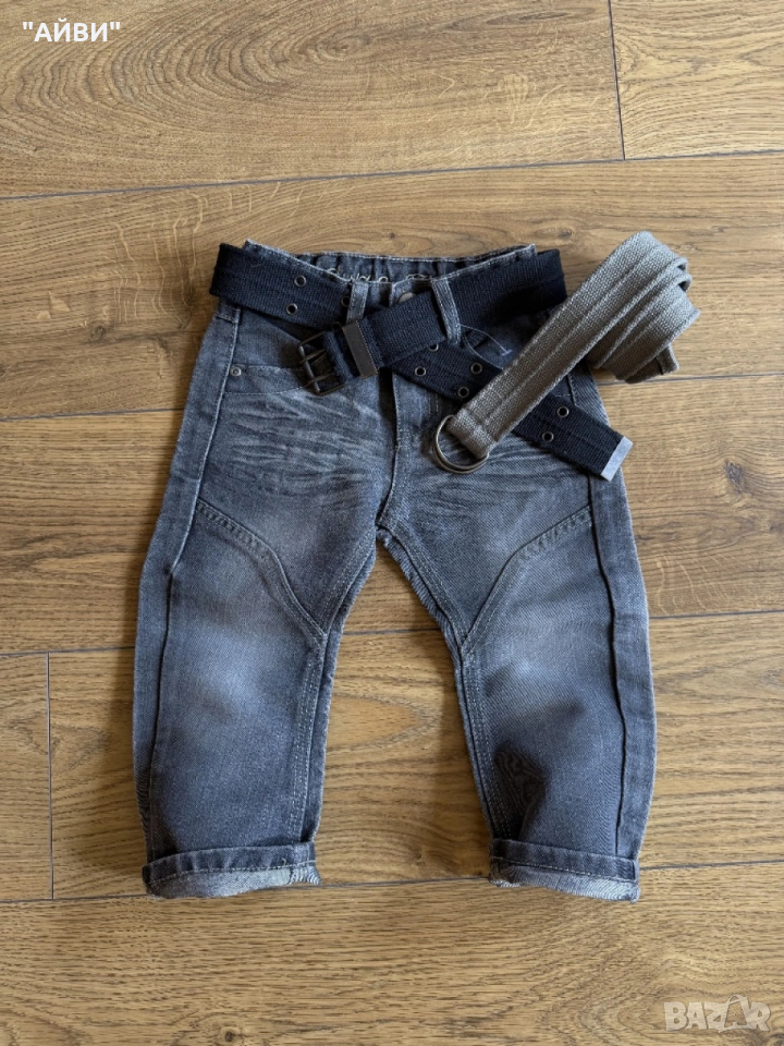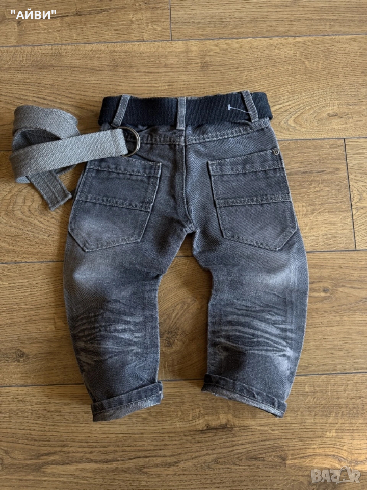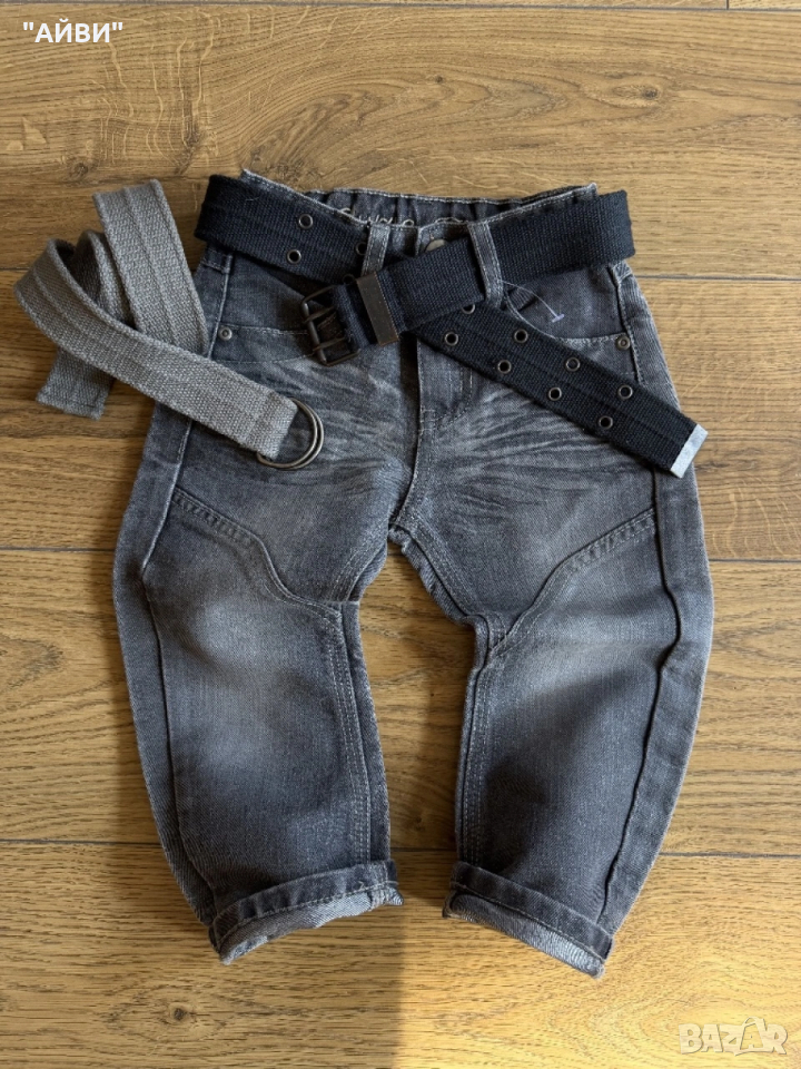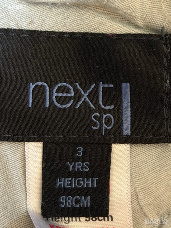 Страхотен нов крив модел на Next разм.2-3г./98 Мек дънков плат, сиво яко родео, фабрично трити с намачкан ефект, големи яки джобове отзад, талия с ластик за коригиране.