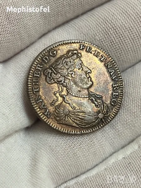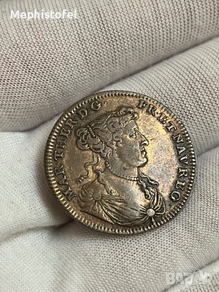 Стар меден жетон/токен от втората половина на XVII век - Мария-Тереза от Австрия, съпруга на крал Луи XIV - Кралят Слънце, и кралица на Франция. Рядко срещан, индекс в Numista 92.