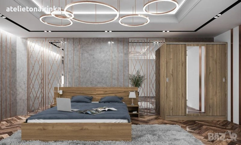 Спалнята е с повдигащ амортисьорен механизъм за матрак 160/ 200 см.