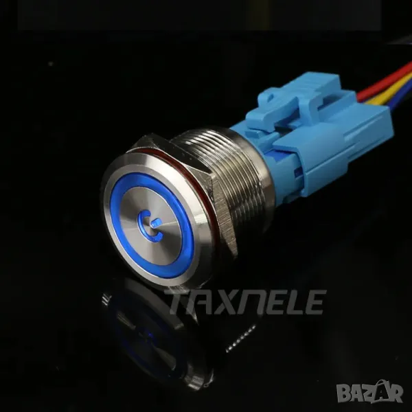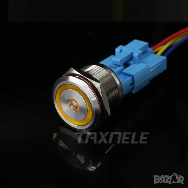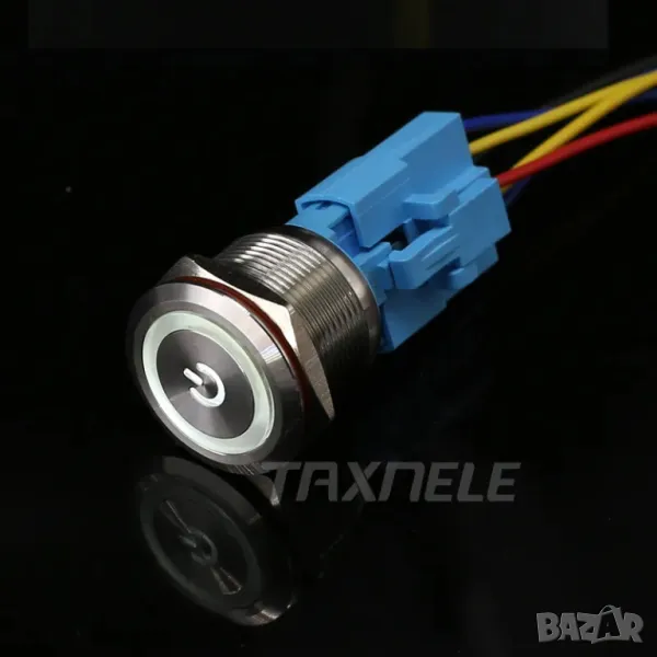 Професионален 22mm метален бутон с пръстеновидна червена LED подсветка, изключително издръжлив и водоустойчив (IP67), проектиран за тежки индустриални и автомобилни приложения при напрежение до 250V AC.