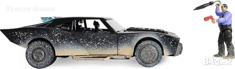 DC The BATMAN Батмобил със звукови и светелинни ефекти и фигура Батман Селина Кайл и Пингвина 10см