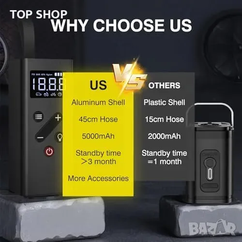 Универсална Употреба: 4 предварителни режима за автомобили, мотори, SUV, дюшеци и басейни.