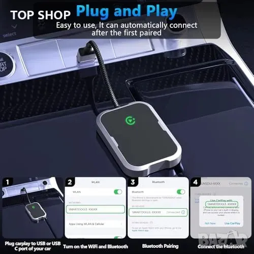 Нов Безжичен CarPlay адаптер за автомобили коли 2017+, iPhone iOS 10+