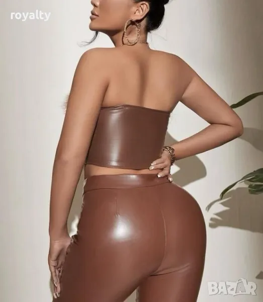 Дамско кожено кафяво бюстие с пух, снимка 1 - Комплекти - 49920220 Дамско кожено кафяво бюстие с пух, снимка 2 - Комплекти - 49920220 1/2