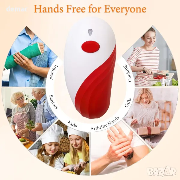 Електрическата отварачка за консерви без ръце работи с един бутон и реже прецизно почти всякакъв размер консерви, без да оставя остри ръбове. Проектирана за лекота и безопасност, тя е идеална за възрастни хора, деца или хора с ограничена сила на захват. Характеристиките ѝ включват тиха работа, гладки ръбове, компактен дизайн и лесна употреба. Работи с 2 AA батерии (не са включени) и е практичен подарък за семейство или приятели.