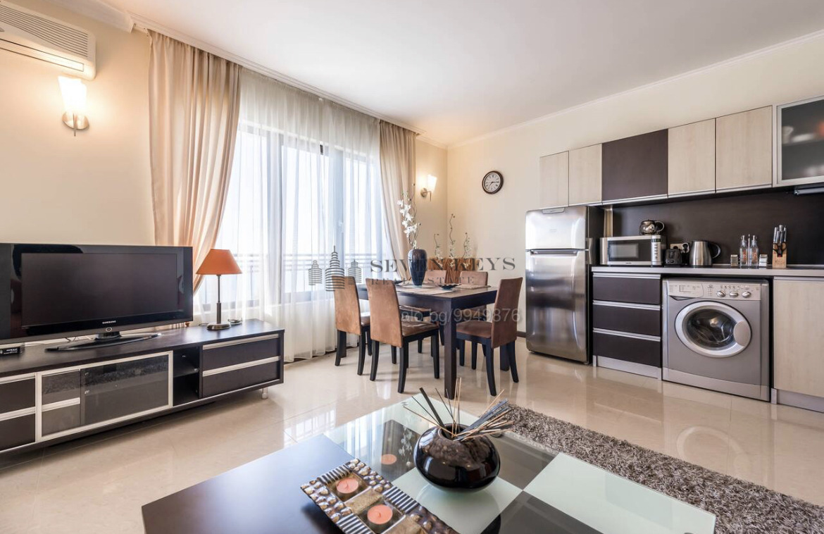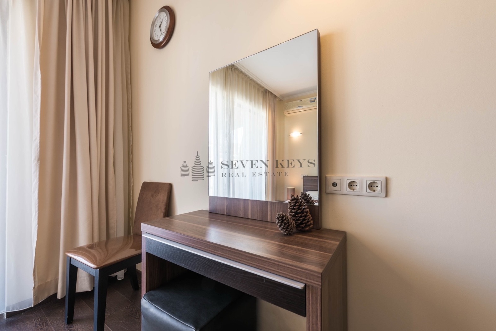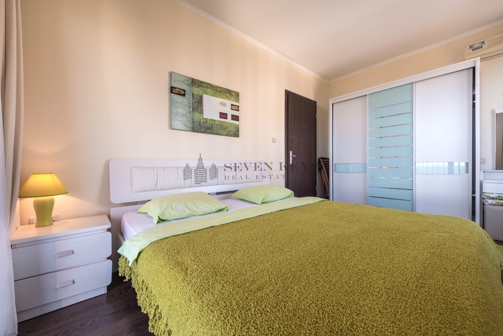 Имотът е напълно обзаведен и оборудаван и се състои от: дневен тракт, тераса с прекрасна морска панорама, две спални, баня с тоалетна и коридор.