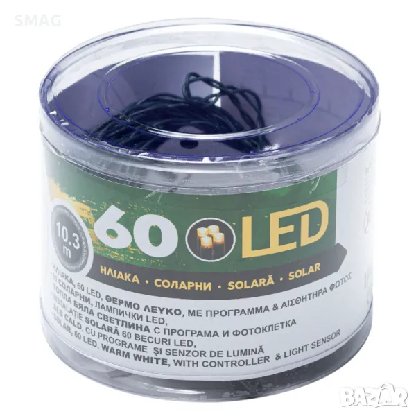 60 вътрешни-външни соларни LED лампи със сензор за програма и светлина 10,3 м - топло бяло S_1204162