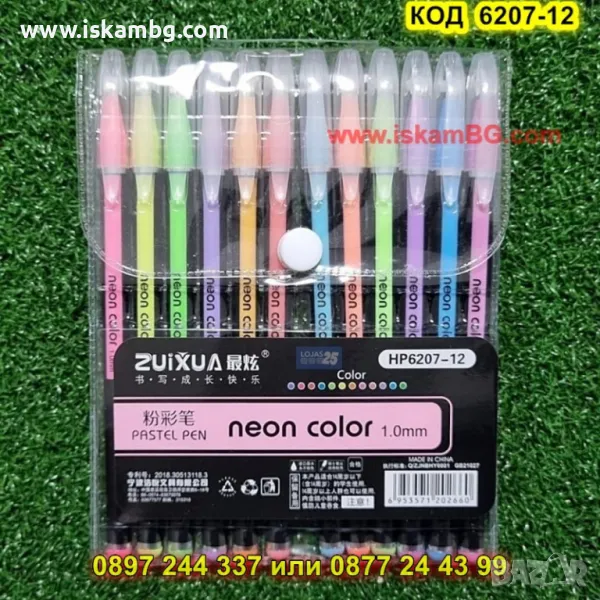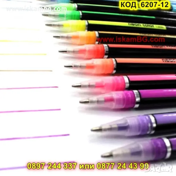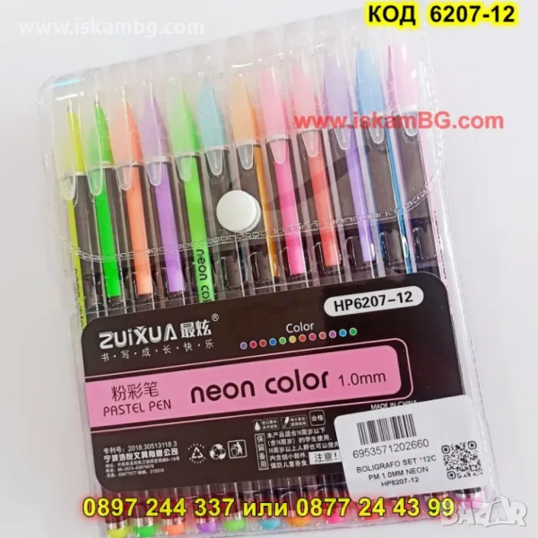 12 пастелени неонови химикалки Neon Color Pen 1.0mm HP6207-12
