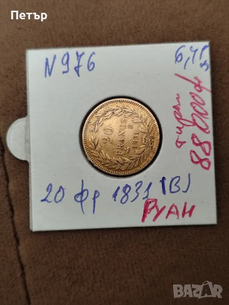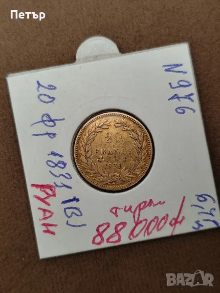 Златна Монета 20 Френски Франка Луи Филип I 1831 г. → Обява 49922082