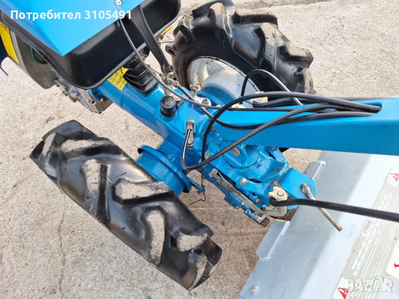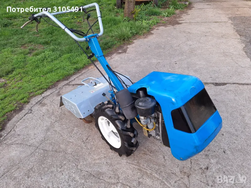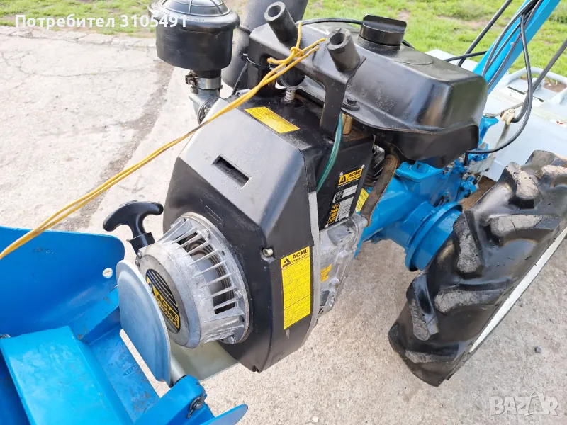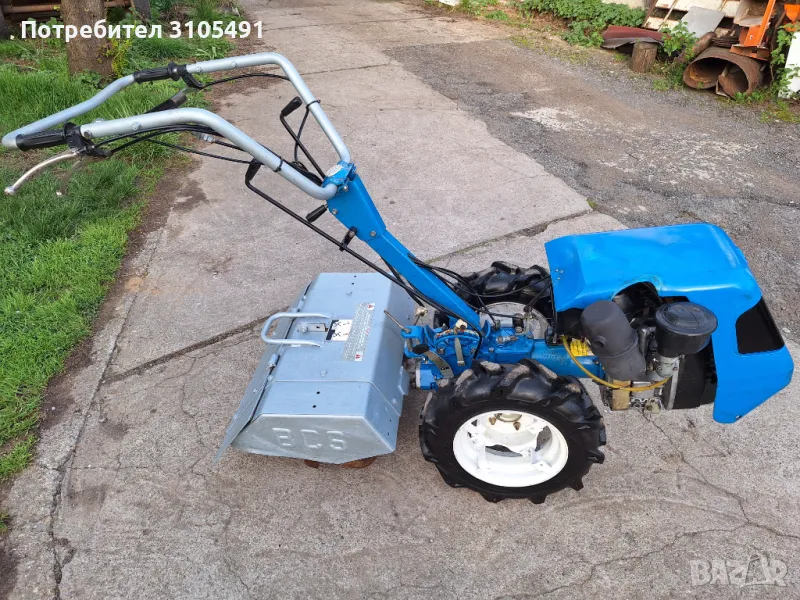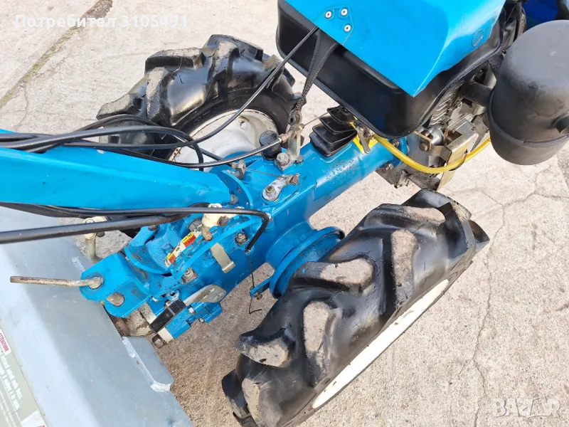 Мотоблок с прикачна фреза 70см. Машината е италианска, марка BCS, модел 735, двигател бензинов 4-тактов acme , 10 к.с., 8 предни и 2 задни скорости (бързи и бавни), силоотводeн вал, блокаж и отблокиране на диференциала, ръчни спирачки за лесно завиване, 10 цола гуми с джанти. Дръжките може да се завъртат на 180⁰. Може да се прикача палцова косачка, роторен снегорин, ремарке, плуг, браздир или друг инвентар. Работи като часовник. Висок клас, изключително здрава и надеждна машина. Цената е 1250 евро и е без коментар.