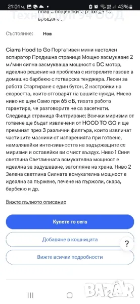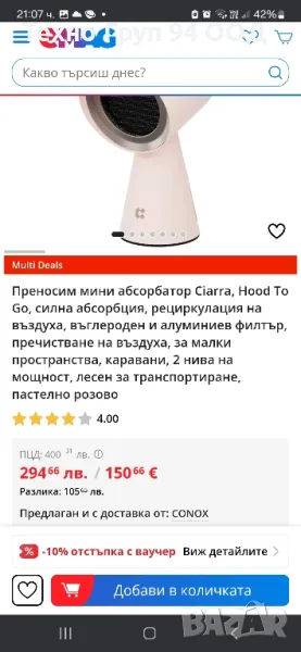 Преносим мини аспиратор/пречиствател против лоши миризми - чисто нов → Обява 49923705