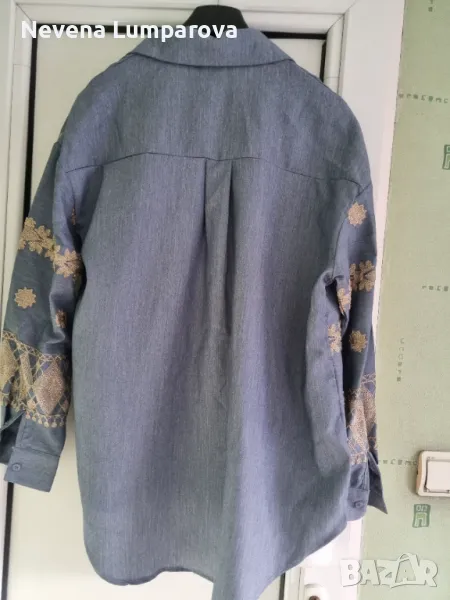 Синя дамска блуза със златна бродерия , снимка 1 - Блузи с дълъг ръкав и пуловери - 49924354 Синя дамска блуза със златна бродерия , снимка 2 - Блузи с дълъг ръкав и пуловери - 49924354 1/2