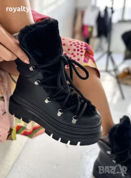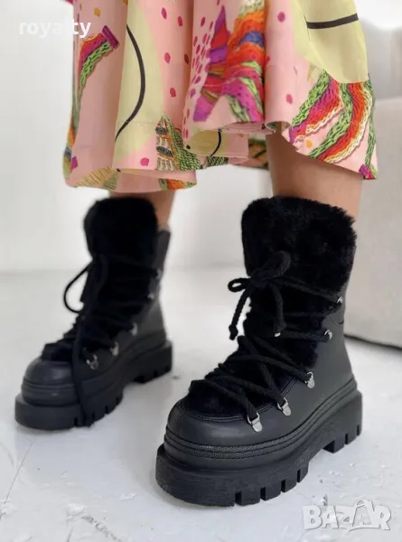 Боти на платформа - черна кожа с черен пух → Обява 49924360
