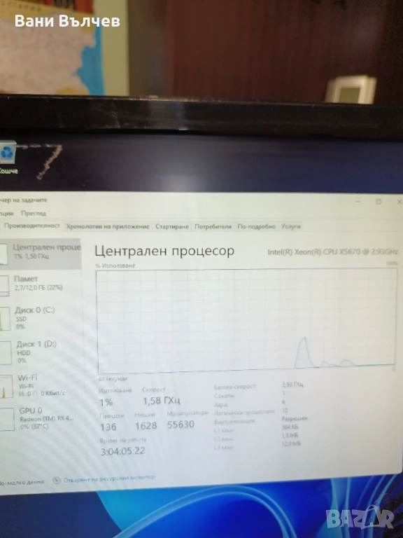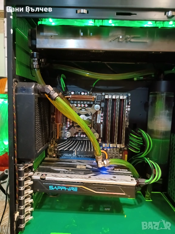 Машината е в перфектно състояние готова за работа с нов win 11 pro олекотен с пълен софтуерен пакет. Всички параметри са на снимките напълно водно охлаждане с регулиране на оборотите на всеки един вентилатор по отделно и BD-ROM захранване BeQuiet 680 W .За още инфо на посочения номер в обявата.Моля прегледайте и другите мои обяви.