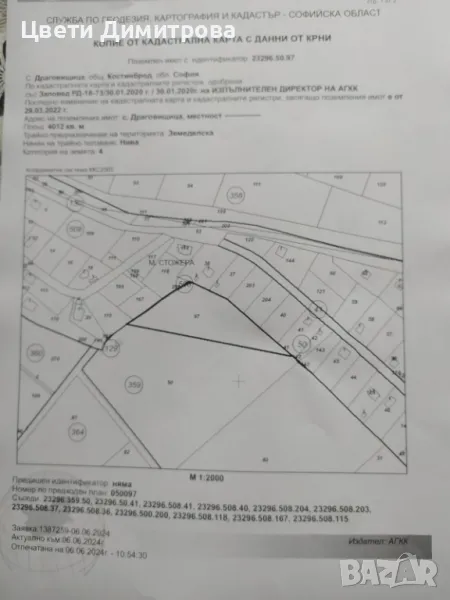 🚩Предлага за продажба два парцела-земеделска земя кат.4- нива в землището на ➡️с.Драговищица-местност- Стожера,общ.Костинброд с обща площ от 17108 кв.м (13096кв.м,+4012кв.м) до РЕГУЛАЦИЯ с възможност смяна на статут/предназначение/