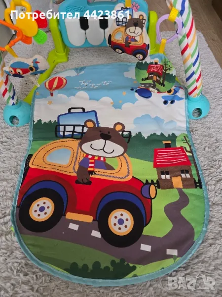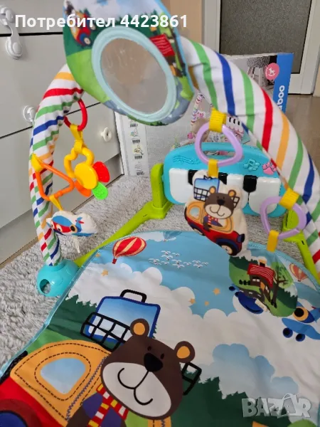 Активната гимнастика е в много добро и запазено състояние. Може да се ползва в легнало и седнало състояние. Има пиано с няколко мелодии, проектор и bluetooth връзка, чрез която може да пускате различни детски песнички. Пианото може да се ползва и като отделна играчка.