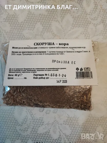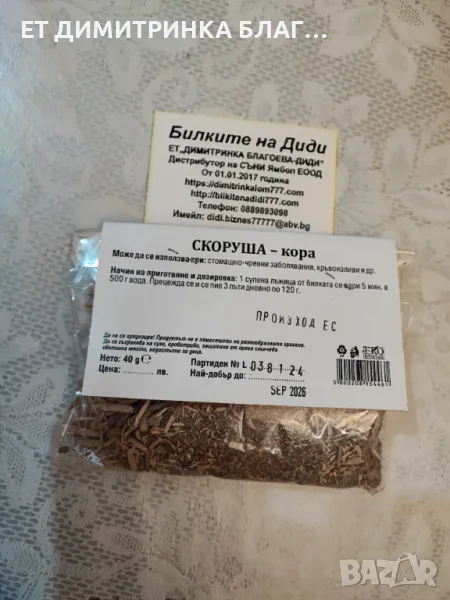 Скоруша кора при стомашно- чревни заболявания, кръвоизливи и други!  Скоруша кора  Опаковка от 40 → Обява 49925891