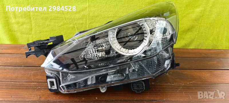Оригинален ляв LED фар за Mazda 2 - Стъкло и корпус в много добро състояние, един счупен захват от към калника, другия горен има поправено - вижда се на последната снимка.