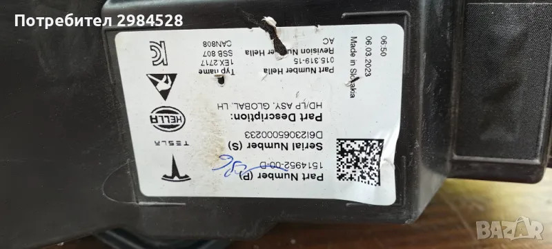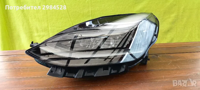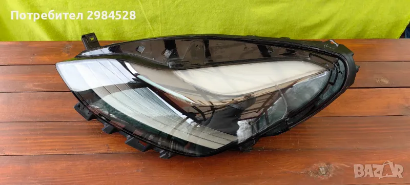 Оригинален Full LED фар за Tesla Model 3 / Model Y - Корпус и захвати в много добро състояние, стъклото има пукнатина (залепена, за да не пропуска влага или прах), която се вижда на снимките. Фара е подходящ за смяна на стъклото или каско.