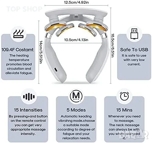 Нов преносим Масажор за врата при болки в шията с функция за загряване → Обява 49927061