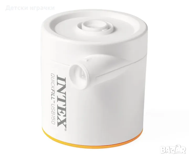 Intex QuickfillTM Rechargeable air pump USB150R се захранва от вградена акумулаторна батерия, която се зарежда чрез всяко USB. Помпата е компактен, удобен уред, предназначен за бързо надуване на топки, дюшеци, пояси и други „надувки“ на Intex и други. Помпата е много удобна за използване при излизане сред природата или на село, когато не е възможно свързване към електрическата мрежа.